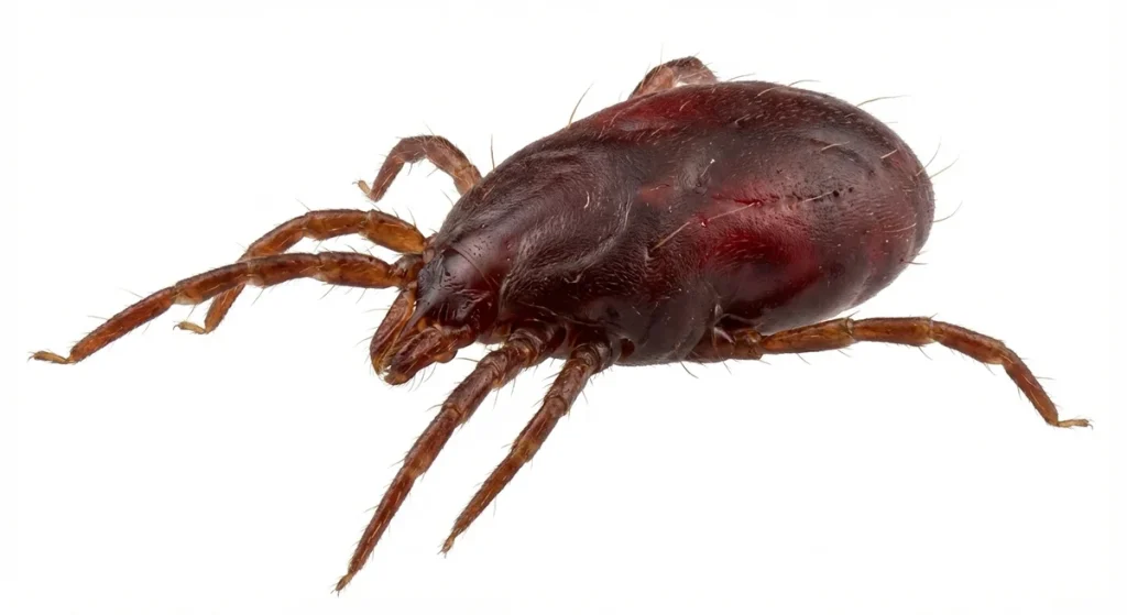 Ungefütterte Milben sind sehr klein und eher grau bis hell. Nach einer Blutmahlzeit erscheinen sie deutlich dunkler bis rötlich.